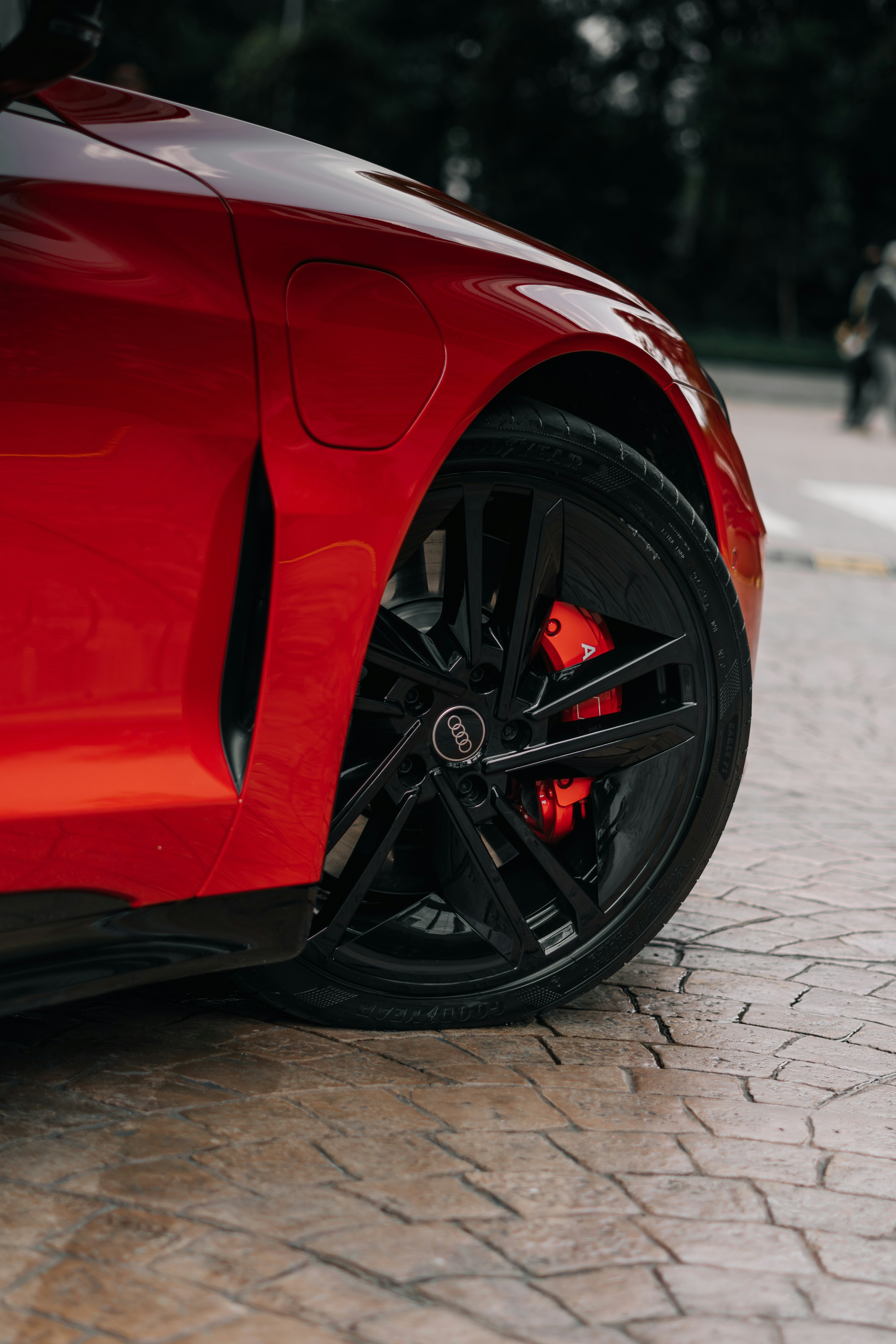 패드가 휠 사이로 보이는 차량은 육안으로도 잔량을 어느 정도 파악할 수 있습니다. 다만 정확한 두께 측정은 정비소에서 전용 게이지를 사용해 확인하는 것이 일반적입니다.