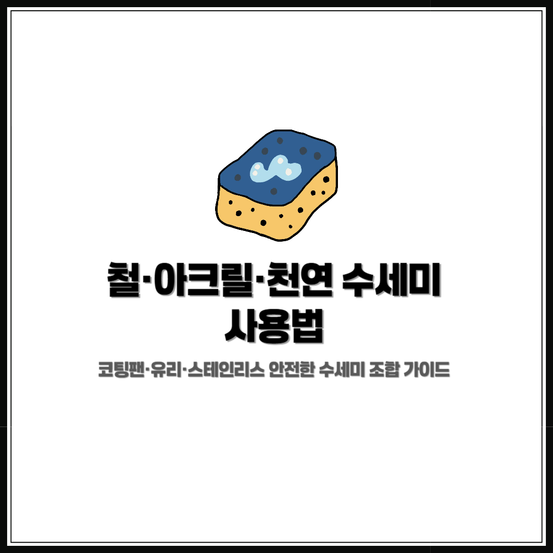 철·아크릴·천연 수세미는 재질별 마찰력과 흡수력 차이로 인해 사용할 수 있는 표면이 다릅니다. 코팅팬·유리·스테인리스는 수세미 종류에 따라 스크래치·광택 손상·유막 등 문제가 발생할 수 있어 주의가 필요합니다. 이 글에서는 표면별 안전한 수세미 조합과 올바른 사용법을 정리합니다.